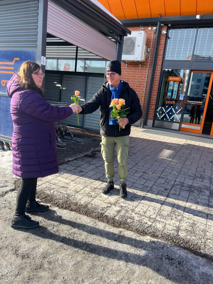 Naistenpäivänä 8.3. haluttiin kiittää ja huomioida alueen naisia heidän tärkeästä roolistaan perheissä, työelämässä ja yhteisössä. Ruusuja jaettiin hyvässä hengessä ja kohtaamiset kyläläisten kanssa toivat monia iloisia hetkiä päivän aikana.